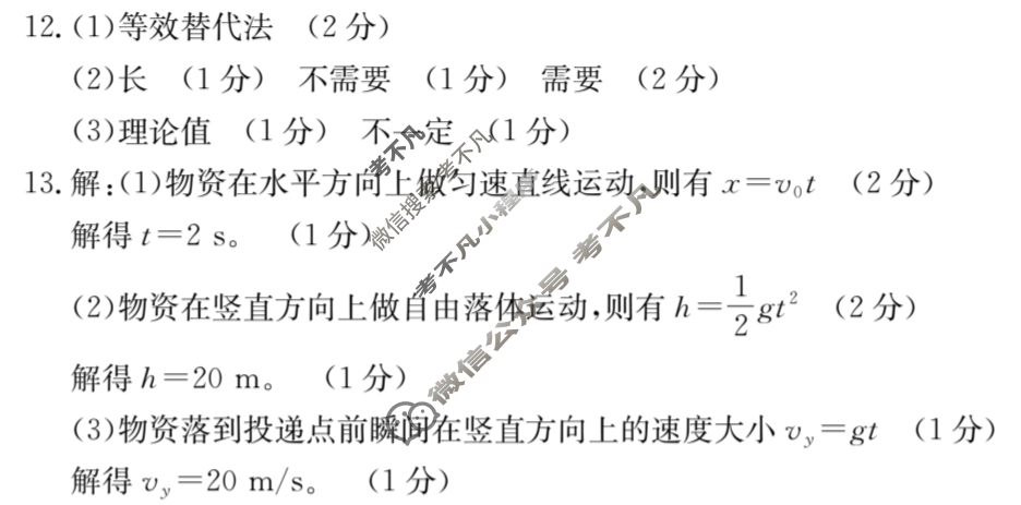 资源详情:金太阳承德市高中2024-2025学年第一学期高一年级期末考试(25-246A)物理答案 中内容包括《金太阳承德市高中2024-2025学年第一学期高一年级期末考试(25-246A)物理答案》请在考不凡上搜索。承德市高中2024一2025学年第一学期高一年级期末考试物理试卷参考答案1.B2.D3.A4.D5.C6.A7.C8.BC9.AC10.AD11.0.20(2分)0.44(3分)0.90(3分)12.(1)等效替代法(2分)(2)长(1分)不需要(1分)需要(2分)(3)理论值(1分)不一