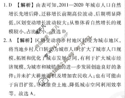 资源详情:2025年衡水金卷先享题·调研卷 普通高中学业水平选择性考试模拟试题 地理L(五)5答案 中内容包括《2025年衡水金卷先享题·调研卷普通高中学业水平选择性考试模拟试题地理L(五)5答案》请在考不凡上搜索。〈返回8☆反馈问题调研卷地理(五)参考答案及解析地理(五)一、选择题7.A【解析】光伏发电制氢是一种利用太阳能光伏发1.D【解析】由表可知,2011一2020年城市人口自然电技术将太阳能转换为电能,进而通过电解水的方式增长先增后降,迁移增长前期高位波动、后期明显降产生氢气的过程。这种技术提高了