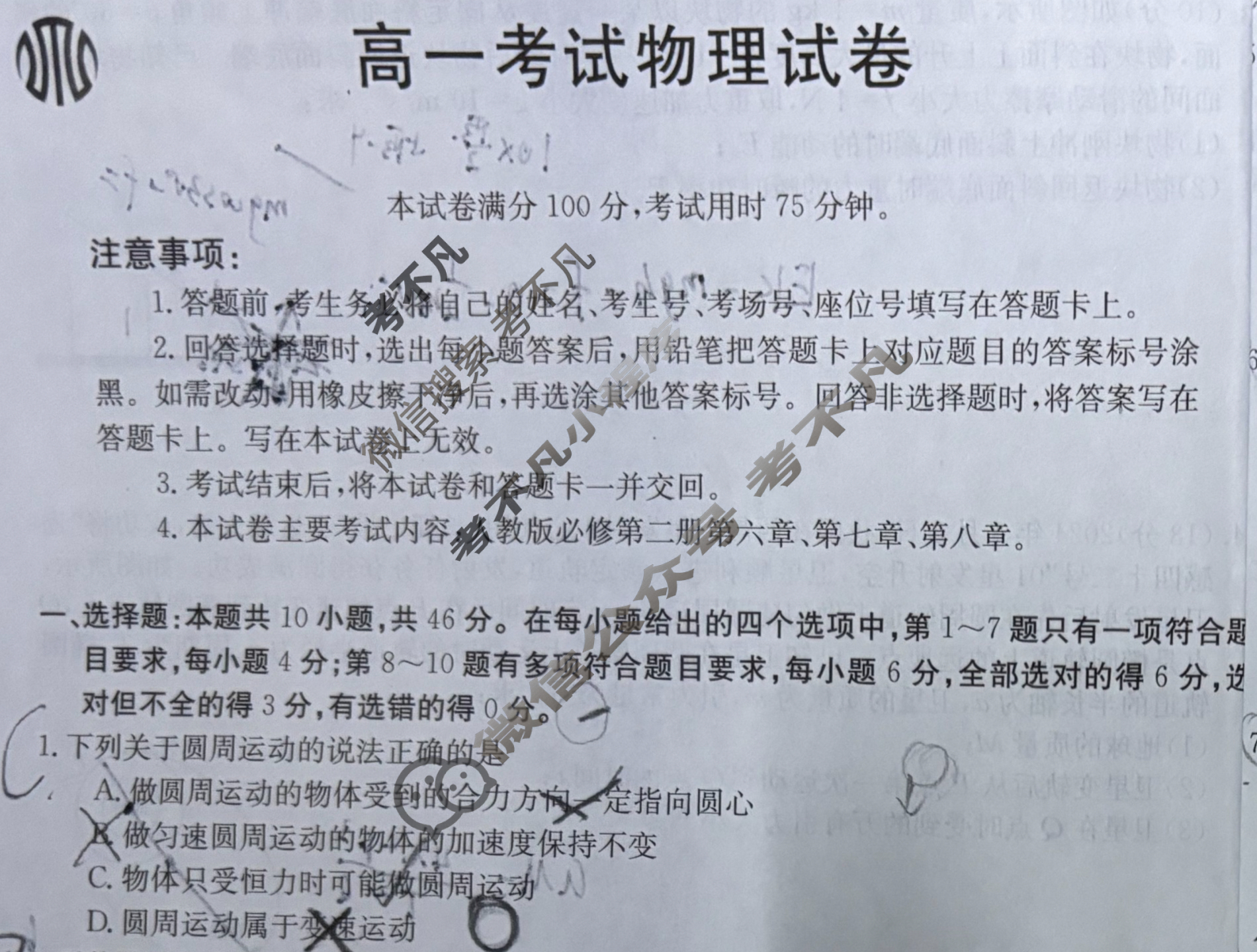 分类:金太阳,2024届,5月联考,24-474A,物理