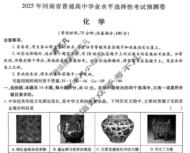 分类:[王后雄教育]2025年湖南省普通高中学业水平选择性考试预测卷化学(河南专版)试题