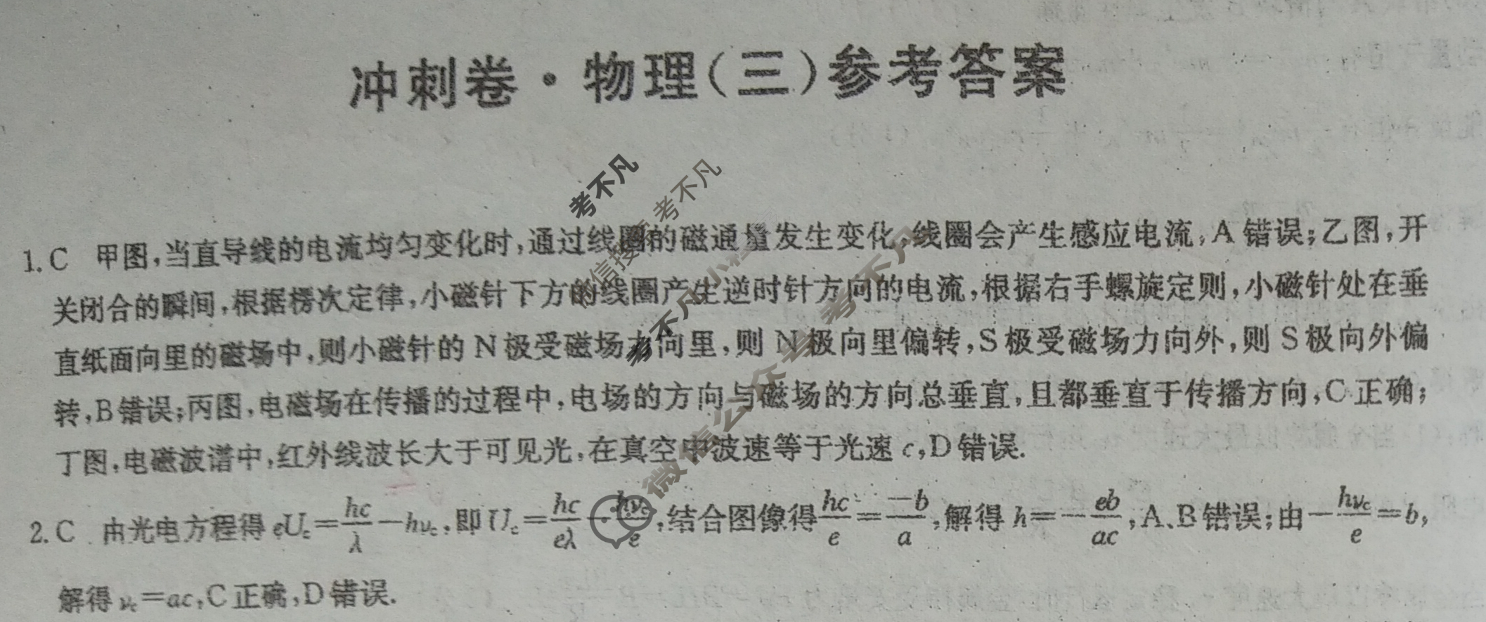 高三2025年河北省普通高中学业水平选择性考试冲刺压轴卷(三)3物理(河北)答案