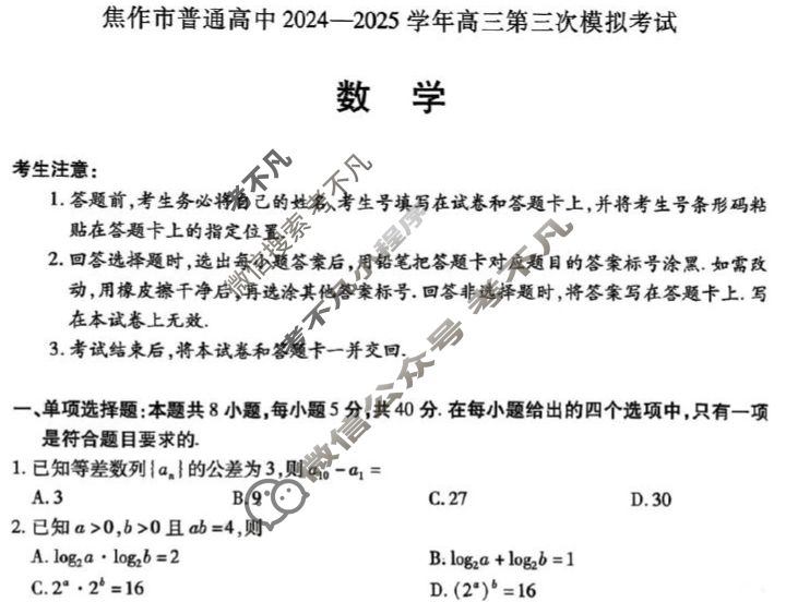 分类:模拟考试,焦作高三第三次模拟,数学,天一大联考,2025届