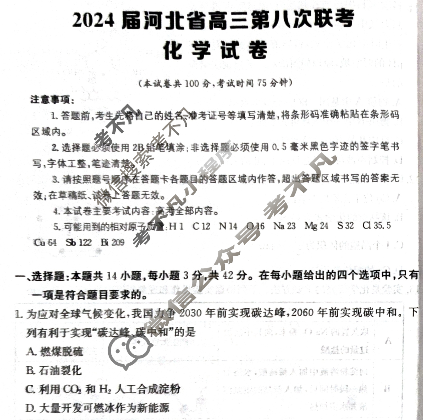 [全国大联考]2024届河北省高三第八次联考 8LK·化学-HEB 化学试题