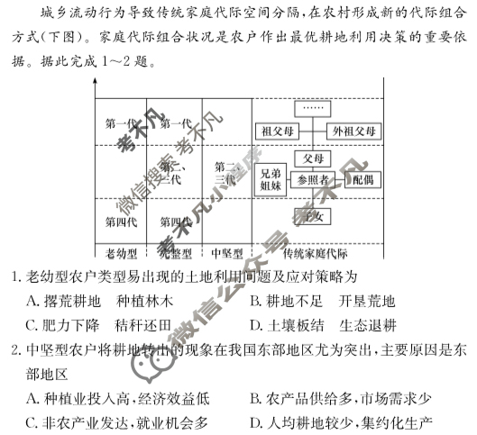 资源详情:炎德英才大联考(附中版)湖南师大附中2025届高三月考试卷(四)4地理试题 中内容包括《炎德英才大联考(附中版)湖南师大附中2025届高三月考试卷(四)4地理试题》请在考不凡上搜索。湖南师大附中2025届高三月考试卷(四)地理得分:本试题卷分选择题和非选择题两部分,共8页。时量75分钟,满分100分第I卷选择题(共48分)一、选择题(本大题共16小题,每小题3分,共48分。在每小题给出的四个选项中,只有一项是符合题目要求)城乡流动行为导致传统家庭代际空间分隔,在农村形成新的代际组合