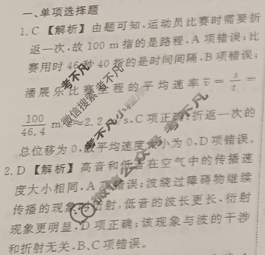 名师卷·高考模拟信息卷 2025年普通高中学业水平选择性考试模拟试题 物理⦿(一)1答案