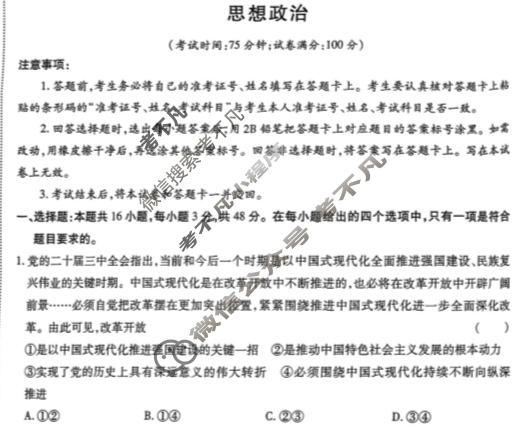 资源详情:[王后雄教育]2025年湖南省普通高中学业水平选择性考试预测卷政治(江西专版)试题 中内容包括《[王后雄教育]2025年湖南省普通高中学业水平选择性考试预测卷政治(江西专版)试题》请在考不凡上搜索。绝密★启用前,丛。符合条件的群众可通过金融机构自愿参加,待退休后,提取相应的本金与收益。2025年江西省普通高中学业水平选择性考试预测卷新实施的个人养老金制度()①通过国民收人再分配,发挥其贵任共担和社会互助共济的功能②践行创新发展理念,有利思想政治于构建我国多层次养老保障体系③能够补齐养老短板