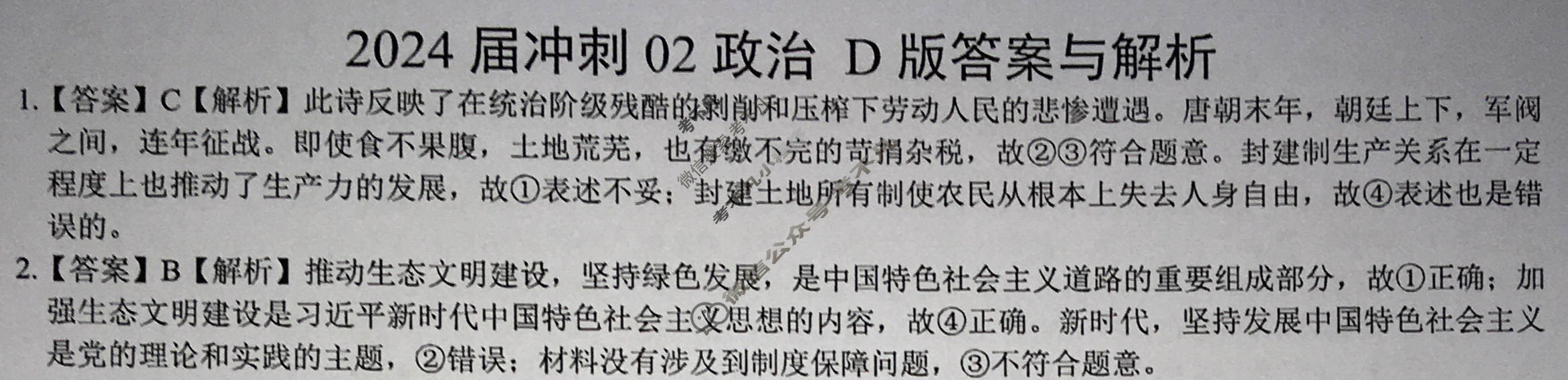 分类:202X冲刺,2024届,冲刺,02,政治D版