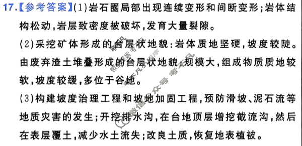 资源详情:[金考卷·百校联盟]2025年高考领航卷(二)2地理答案 中内容包括《[金考卷·百校联盟]2025年高考领航卷(二)2地理答案》请在考不凡上搜索。2025年高考领航卷(二)的名校测评与备考策略o名校测评厦门某重点中学112名学生实测,最高分94分,最低分52分,平均分69分。测试反馈如下,题型题号总分最高分最低分平均分典型错误分析第4题,不能结合图文材料和选项信息,判断河流袭夺后河床剖面的特,点,导选致错选:第13题,不能准确判断我国城镇化、户籍制度及土地制度的关