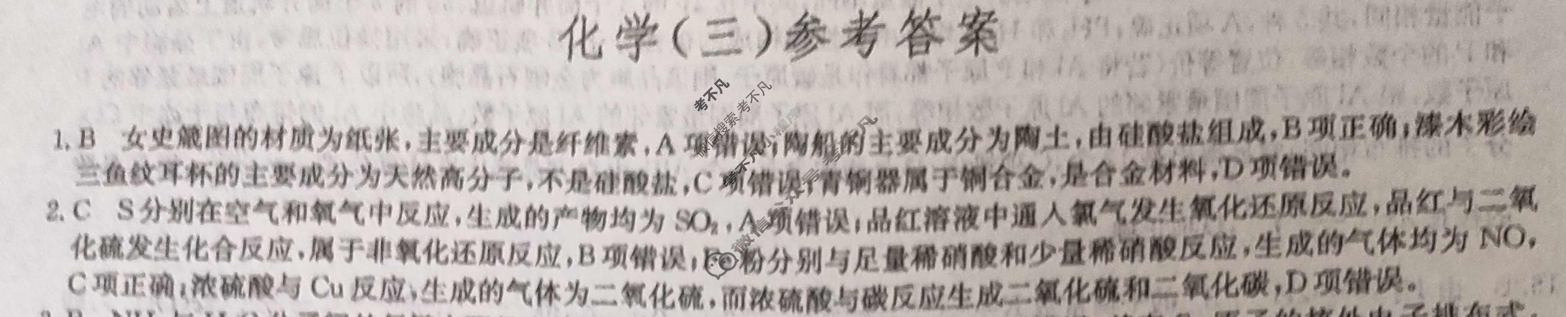 分类:九师联盟,2024届,押题信息卷,三,化学(XKB-B)