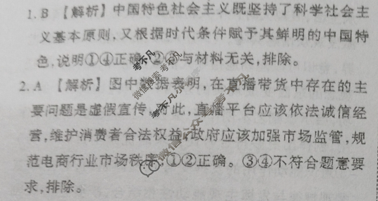 资源详情:2025年衡水金卷先享题·信息卷 普通高中学业水平选择性考试模拟试题 思想政治FJ(二)2答案 中内容包括《2025年衡水金卷先享题·信息卷普通高中学业水平选择性考试模拟试题思想政治FJ(二)2答案》请在考不凡上搜索。信息卷思想政治(二)参考答案及解析思想政治(二)一、选择题8.D【解析】习近平主席强调,金砖国家要聚待开放1.B【解析】中国特色杜会主义既坚持了科学社会主包容、合作共赢的初心使命,积极回应全豫南方的呼义基本原则,又根据时代条件赋予其鲜明的中国特声,欢迎更多国家以多种形式加入金砖事业,说明