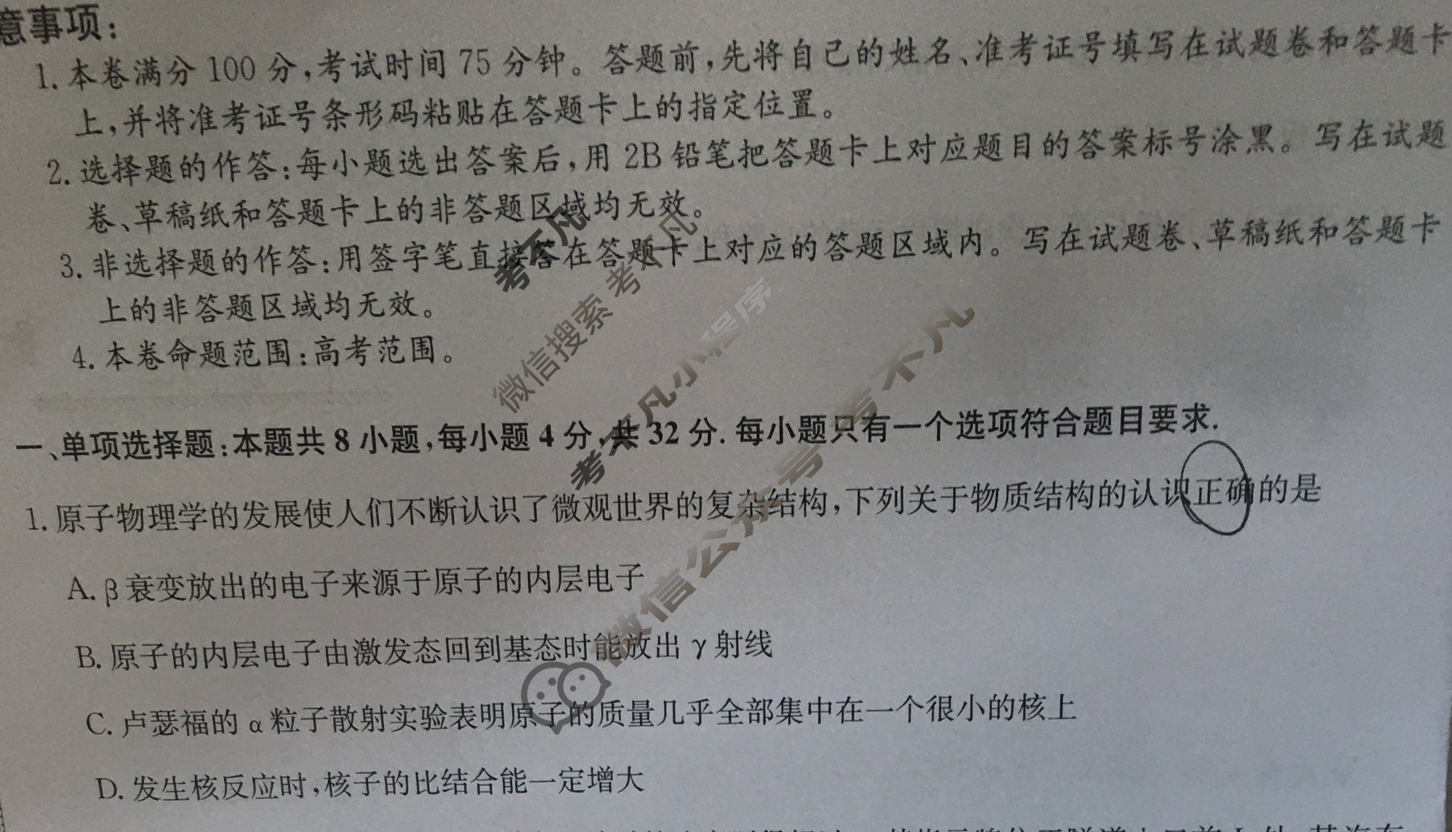 分类:九师联盟,2024届,押题信息卷,三,物理(XKB-H)