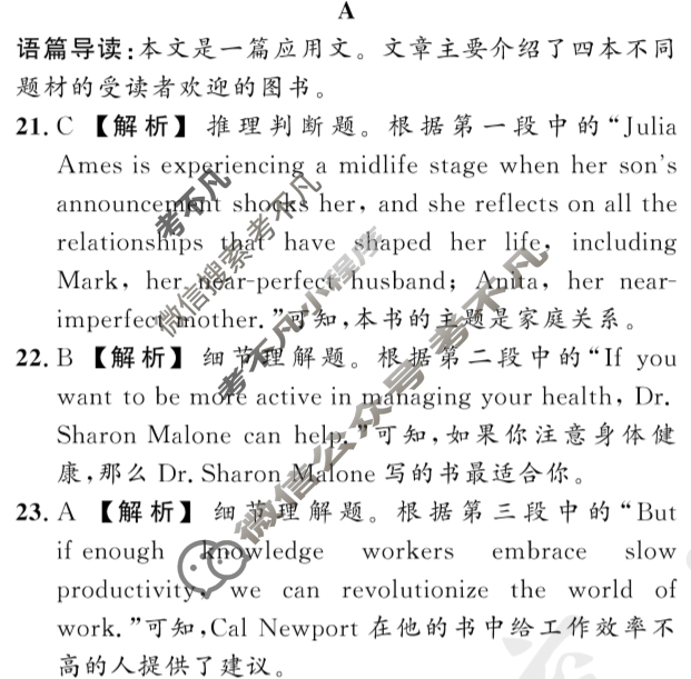 资源详情:[真题密卷]2024-2025学年度综合能力调研检测(五)5英语AT答案 中内容包括《[真题密卷]2024-2025学年度综合能力调研检测(五)5英语AT答案》请在考不凡上搜索。·英语·参考答案及解析参考答案及解析2024一2025学年度综合能力调研检测英语(五)第一部分听力决定选择更难的滑道,给儿子树立榜样,让他勇于挑战1-5BCAAB6-10BAACB自我。11-15ABBCA16-20BCABA27.B【解析】推理判断题。根据最后一段中的第二部分阅读"Itpushesyou