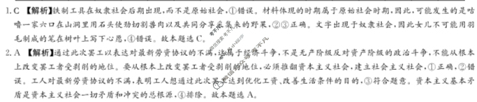 资源详情:[炎德英才大联考]长郡中学2024年下学期高一期中考试政治答案 中内容包括《[炎德英才大联考]长郡中学2024年下学期高一期中考试政治答案》请在考不凡上搜索。长郡中学2024年下学期高一期中考试思想政治参考答案一、选择题(本大题共16小题,每小题3分,共48分)题号12345678910111213141516答案CAACBBACDBADCCBA1,C【解析】铁制工具在奴求社会后期出现,而不是原始社会,①错误。材料体现的时期属于原始社会时期,因此,可能发生的是咕暗一家六