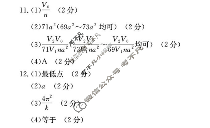 资源详情:河北省2024-2025学年高二考试5月联考(5.26)物理B2答案 中内容包括《河北省2024-2025学年高二考试5月联考(5.26)物理B2答案》请在考不凡上搜索。高二物理考试参考答案1.C2.B3.D4.B5.A6.C7.C8.BD9.AD10.BC1.(1)n(2分)(2)71a2(69a2~73a2均可)(2分)V2V。V,VoV2Vo3)7a73V,a269Va均可)(2分(4)A(2分)12.(1)最低点(2分)(2)a(2分)(3)4π(2分)(4)等于(2