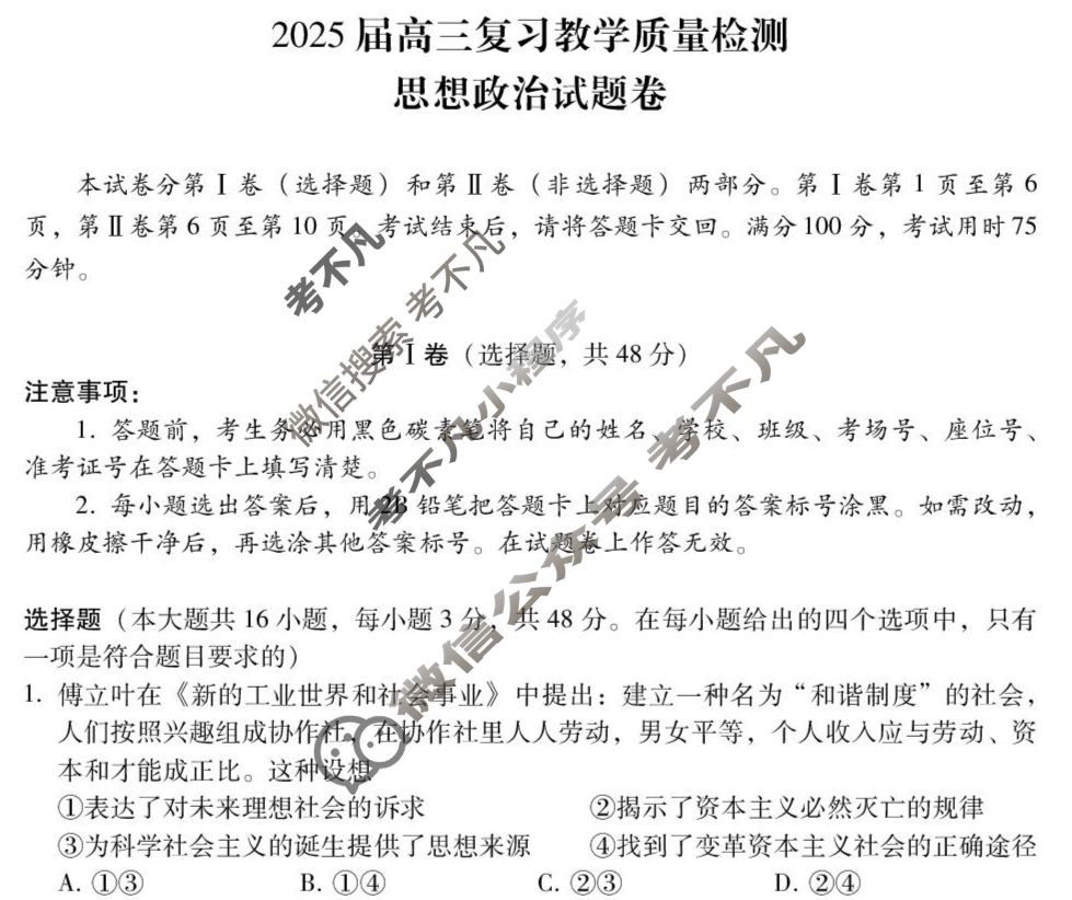资源详情:玉溪市2025届高三复习教学质量检测政治试题 中内容包括《玉溪市2025届高三复习教学质量检测政治试题》请在考不凡上搜索。【考试时间:2025年4月29日14:30~15:45】3.园区经济是以园区为载体,通过产业集聚和资源整合,实现产业规模化、专业化发展,从而带动区域经济增长的一种经济发展模式。为推动园区经济高质量发展,20252025届高三复习教学质量检测年云南省将采取一系列有力举措。下列举措符合该目标且传导路径正确的是思想政治试题卷①推动园区布局
