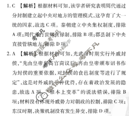 资源详情:2025年衡水金卷先享题·调研卷 普通高中学业水平选择性考试模拟试题 历史L(六)6答案 中内容包括《2025年衡水金卷先享题·调研卷普通高中学业水平选择性考试模拟试题历史L(六)6答案》请在考不凡上搜索。〈返回8☆反馈问题调研卷历史(六)参考答案及解析历史(六)一、选择题6.A【解析】根据材料可知,洋务运动时期,洋务派官1.C【解析】根据材料可知,该学者研究表明周代通过员关注西方历史,尤其是法国大革命历史,结合所学分封制建立起中央对地方的管理模式,这孕育了大可知,这是为了了解和学习西方,激发国